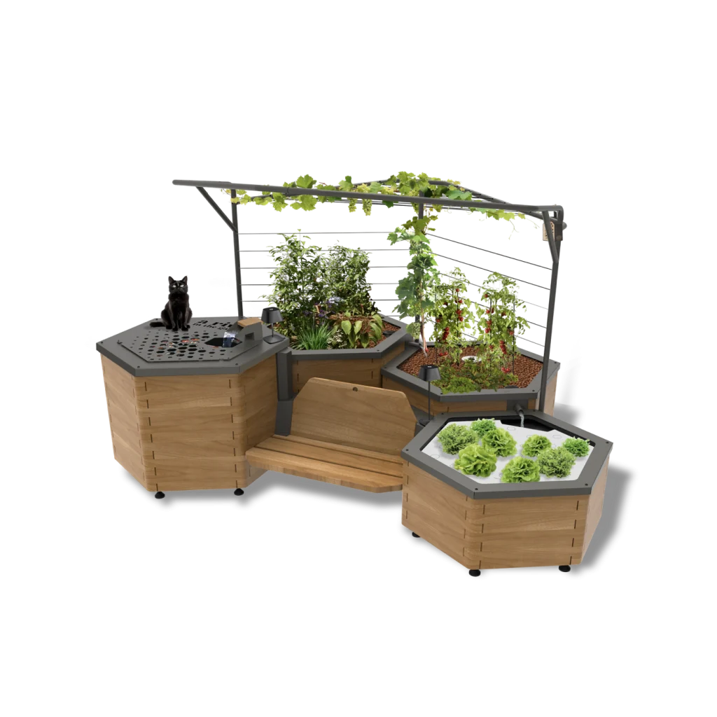 Ainsi, notre mission est de réinventer les jardins potagers en nous appuyant sur l’aquaponie, une technique de culture aux qualités immenses. Elle permet de cultiver fruits, légumes et protéines (en élevant des poissons) en réduisant de 90 %, la consommation d’eau par rapport au jardinage traditionnel. Elle fournit une alimentation saine et naturelle, sans aucun pesticide, des aliments qui retrouvent du goût. De plus, elle efface toute la pénibilité de l’entretien d’un jardin potager en conservant uniquement le plaisir de cultiver.